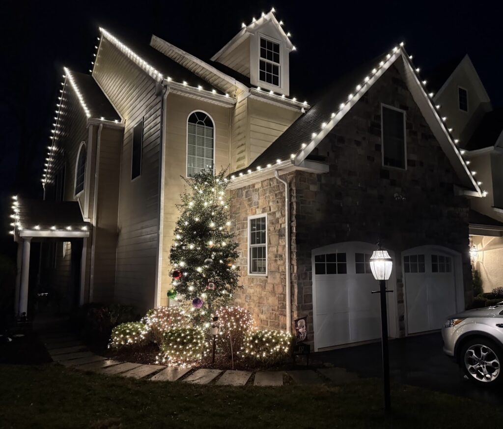 Browse our professional Christmas light installations across Delaware County. From elegant roofline displays and stunning tree wrapping to custom accent lighting, see how we transform homes in Media, Haverford, Upper Darby, Springfield, and surrounding townships into neighborhood showcases.